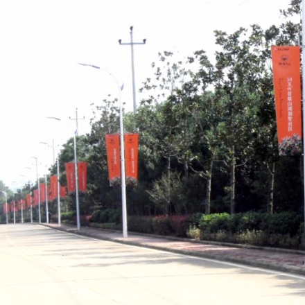 道旗,又名路旗、灯杆旗。一般是指安置于道路两侧、活动场馆附近的路灯灯杆等物体上的广告、宣传媒体。属于户外广告媒体的一种。